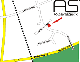Nehmen Sie den Grenzübergang Padborg und biegen sie bei Poetsch/Otto Duborg links in den Industrieweg ein. Überqueren Sie die Bahnschranke und biegen Sie bei der nächsten Kreuzung rechts in den Gewerbedamm ab.
